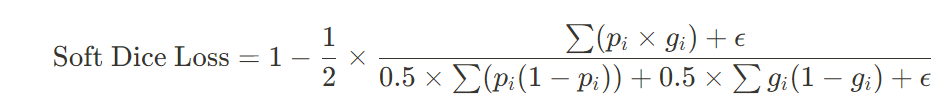 - 입력 이미지의 예측마스크 세트{m}과 ground truth mask set의 {g}의 soft dice loss를 최소화하는 방향으로 학습