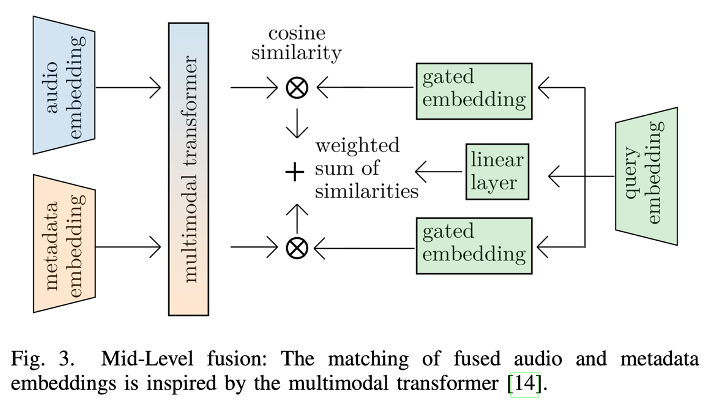 - 오디오와 메타데이터 각각의 임베딩을 별도로 추출한 후, 이들을 중간 레이어에서 결합하여 사용