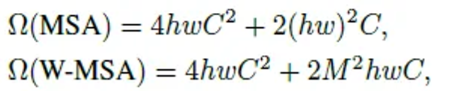 각 window가 M X M patches를 포함한다고 가정할 때, h X w patch 이미지를 기반으로 한 계산 복잡도는 다음과 같이 계산된다.