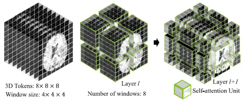 - Swin UNet Transformers (Swin UNETR)은 3D brain tumor semantic segmentation task를 sequence to sequence prediction 문제로 재구성함