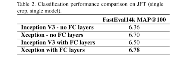 FC layers가 성능에 도움이 된 것으로 파악되었고 Xception이 성능이 더 좋다.
