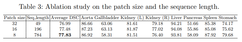 - patch size를 비교실험한 결과로 patch size가 작을수록 더 높은 성능을 보이는 것을 확인.