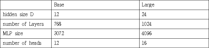 - Transformer encoder의 hyperparameters에 대하여 비교실험한 결과로 Large scale에서 더 좋은 성능을 보임.