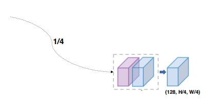 - 3 upsample : H = 1/4*H , 1/4*W = W, C = 128 -> H = 1/2 *H=, W = 1/2 *W, C = 32