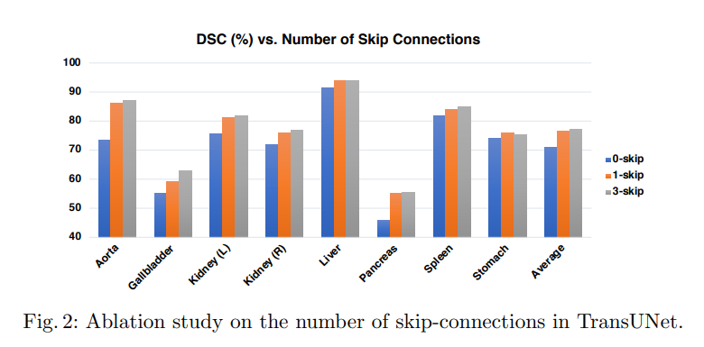 - R20-ViT-CUP은 skip connection을 적용하지 않은 모델로 TransUNet과 DSC에서 6.19%의 성능 차이를 보임.