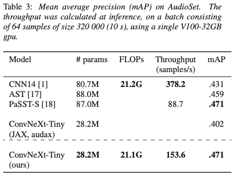 Adapting a ConvNeXt model to audio classification on AudioSet